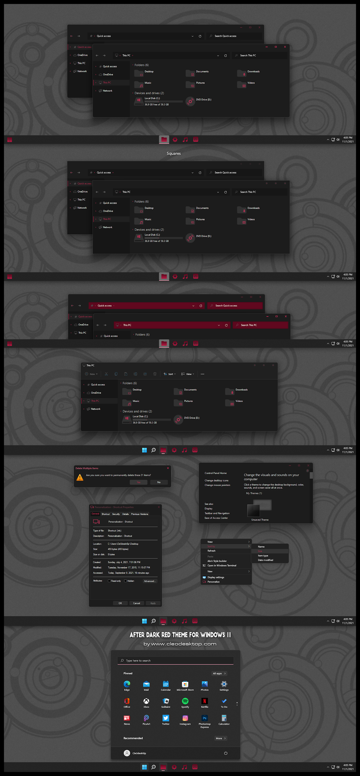 After Dark Red Theme For Windows 11