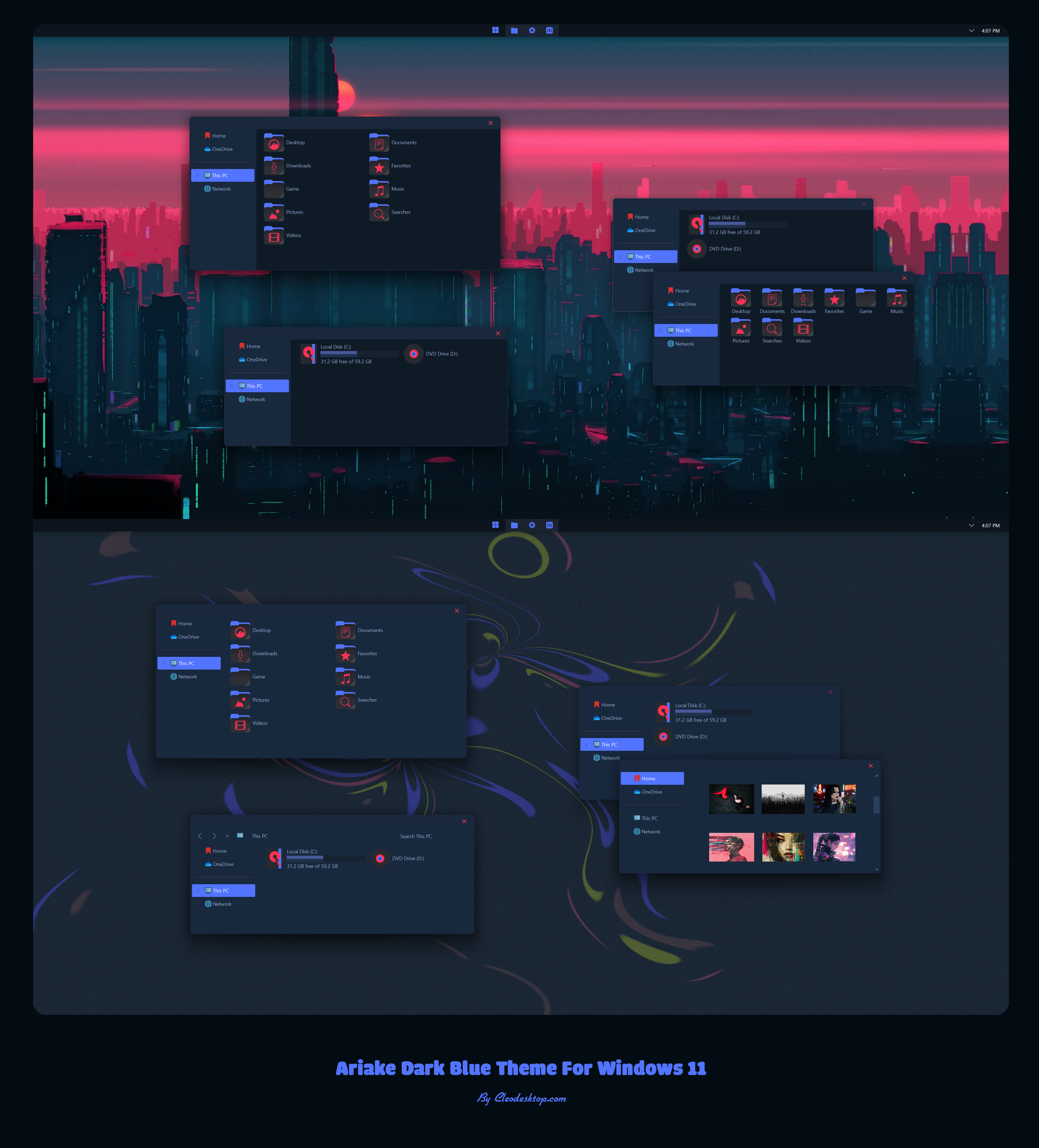 Ariake Dark Blue Theme For Windows 11