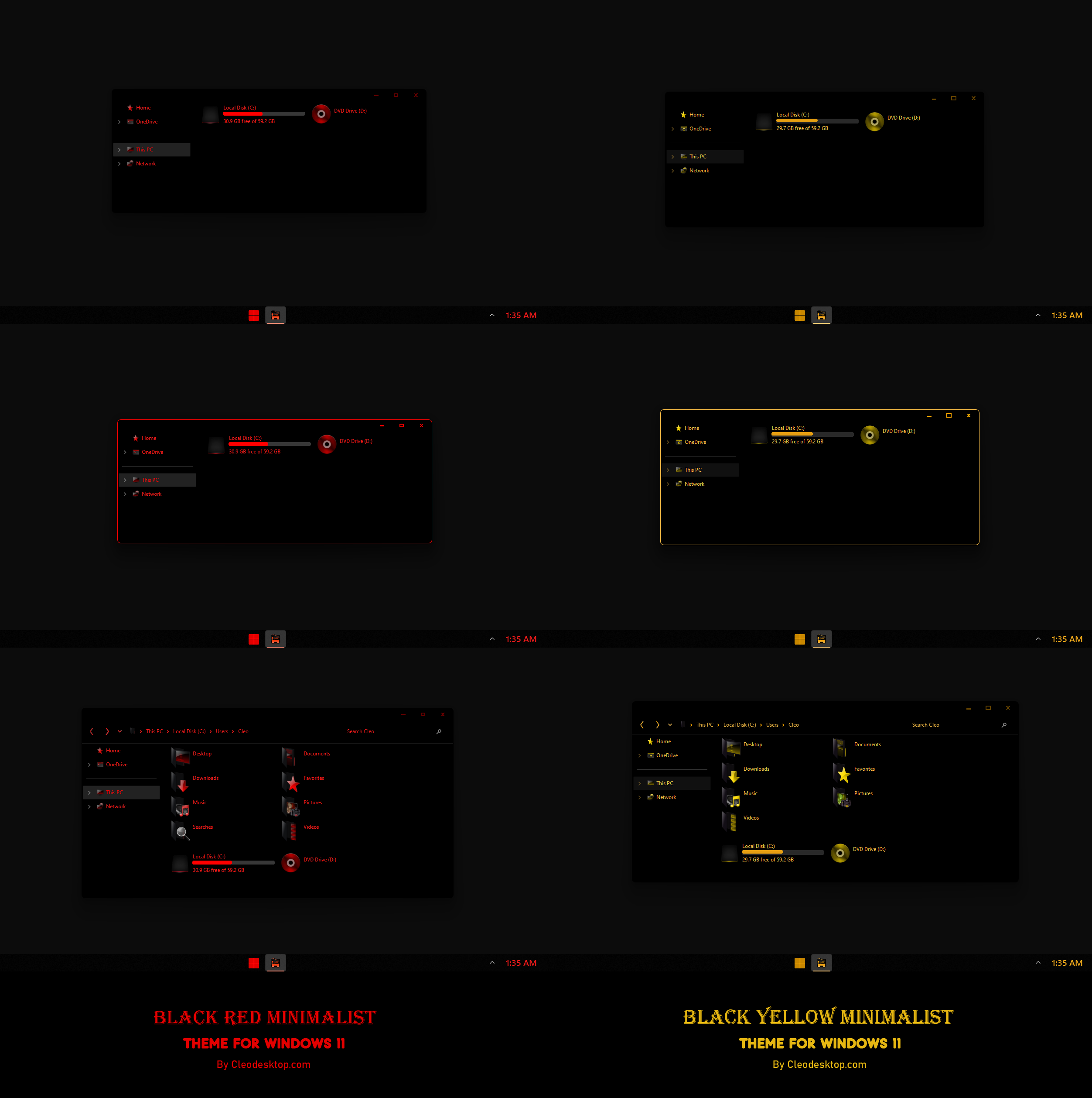 [2 Versions Black Red Minimalist + 2 Versions Black Yellow Minimalist]