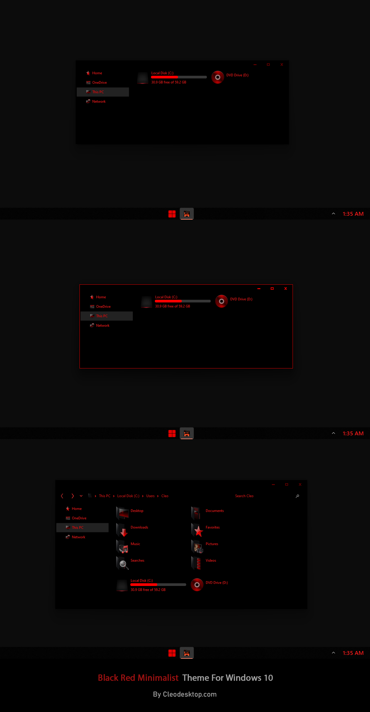 Black Red Minimalist Theme For Windows 10